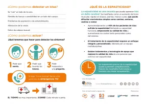 Como parte de este compromiso, compartimos dos infografías elaboradas por dicha Fundación que resumen de forma clara los signos de alerta, las secuelas más habituales —como la espasticidad— y las pautas básicas de prevención secundaria, poniendo a disposición de la población una herramienta útil y visual.