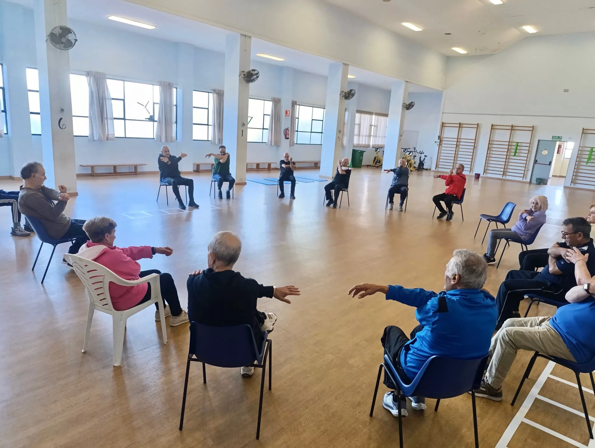 Las sesiones se desarrollan los lunes y miércoles de 10:00 h a 11:00 h en el Pabellón de Deportes Alfonso Queipo de Llano, en Ciudad Jardín, y están dirigidas por profesionales que adaptan los ejercicios a las capacidades y necesidades de cada persona.