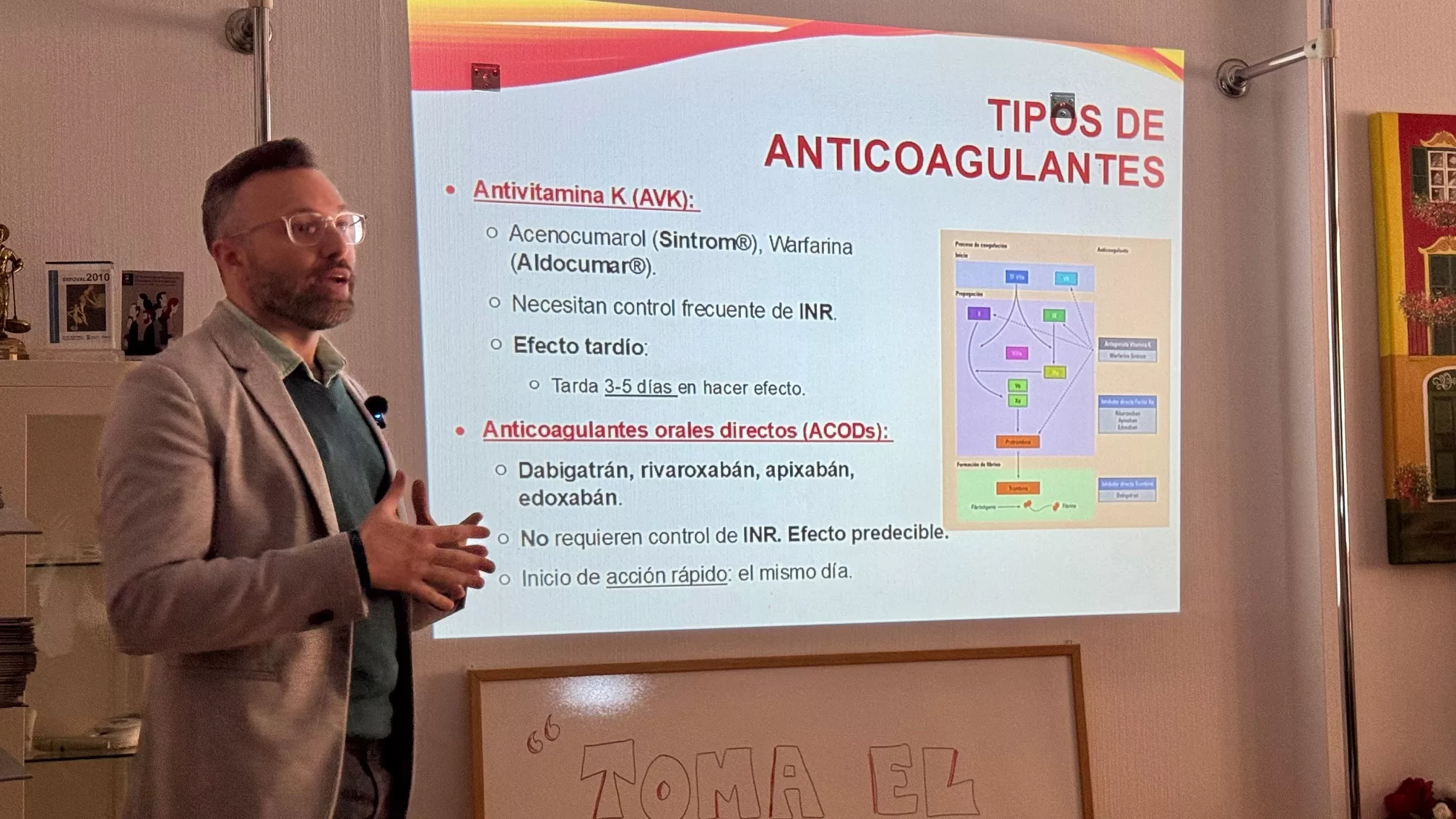 Durante el taller, los asistentes tuvieron la oportunidad de plantear preguntas y resolver dudas sobre situaciones concretas que afectan a los pacientes anticoagulados en su día a día. Se hizo especial hincapié en la importancia de seguir siempre las indicaciones del equipo médico, ya que cada caso es diferente y requiere una evaluación individualizada para determinar si la terapia puente es necesaria.